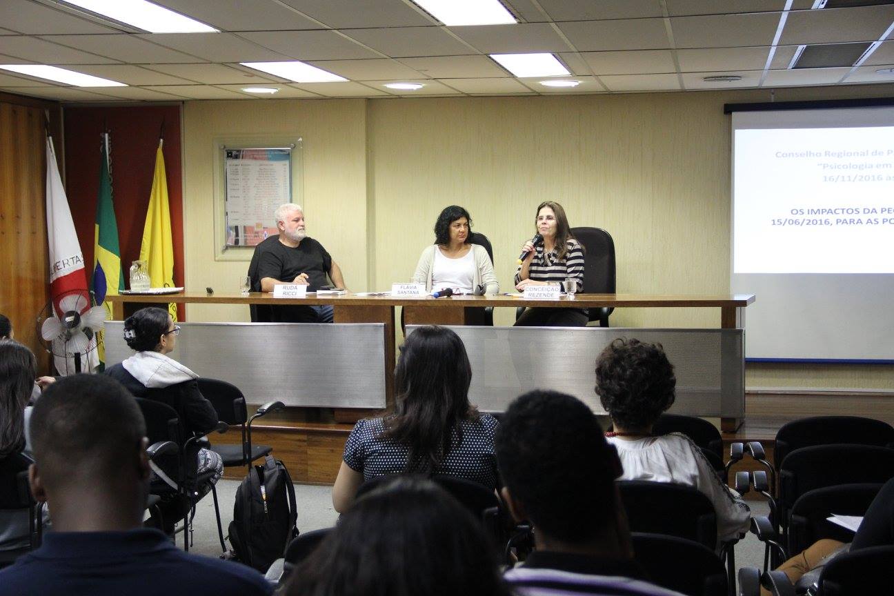 Impactos da PEC 241/55 para as Políticas Sociais 04 Baixar Nome do EventoImpactos da PEC 241/55 para as Políticas SociaisTipo do eventoPsicologia em FocoComissão responsávelComissão de Orientação em Psicologia e Relações com a JustiçaParticipantesConceição Rezende | Flávia Santana | Rudá RicciData16/11/2016EstadoMinas GeraisCidadeBelo HorizonteAssuntosImpactos da PEC 241/55 | Políticas Públicas Item anteriorII Encontro de Coordenadores de Cursos de Psicologia de Minas Gerais Próximo itemImpactos da Terceirização na Saúde do Trabalhador